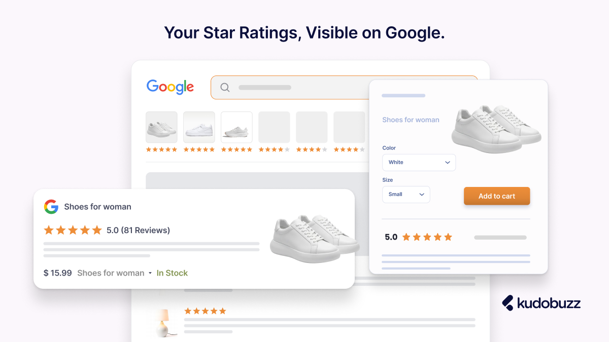 Kudobuzz automatically adds rich snippet markup to all products across all supported platforms without requiring any manual technical setup. The star ratings appear in both search results and Shopping feeds, and the implementation works the same way regardless of which e-commerce platform your store runs on. It's one of those features that quietly does significant work in the background without needing constant attention once it's in place.