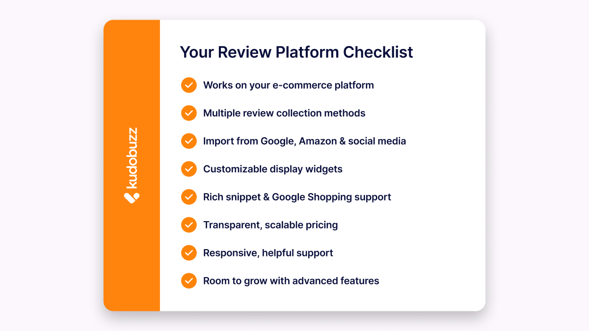 The right review platform is ultimately the one that fits how your specific business operates today while leaving room for where it's going. Platform compatibility, collection methods, import capabilities, display options, SEO features, transparent pricing, quality support, and room for growth are the criteria that actually determine whether a review platform earns its place in your stack or creates more problems than it solves.